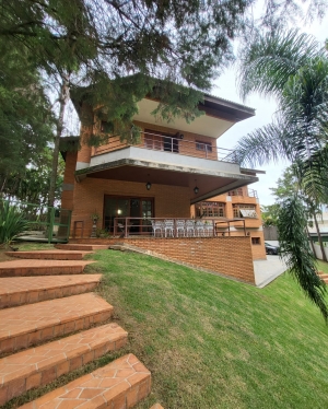 Ótimo imóvel com 1.500 m² de terreno, sobrado alto padrão com área construída de 750 m², 04 suítes com varandas, closets, hidro. Living com lareira, lavabo, escritório, ar-condicionado, sala de TV, sala de jantar e almoço todas com vista para o amplo quintal.